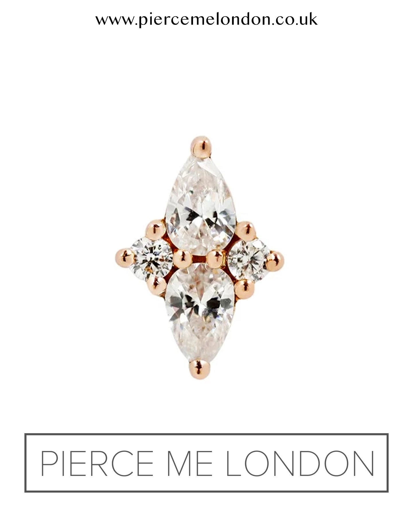 Gemstone: 2x 3 x 2mm pear cut and 2x 1.3mm round cut CZ's
